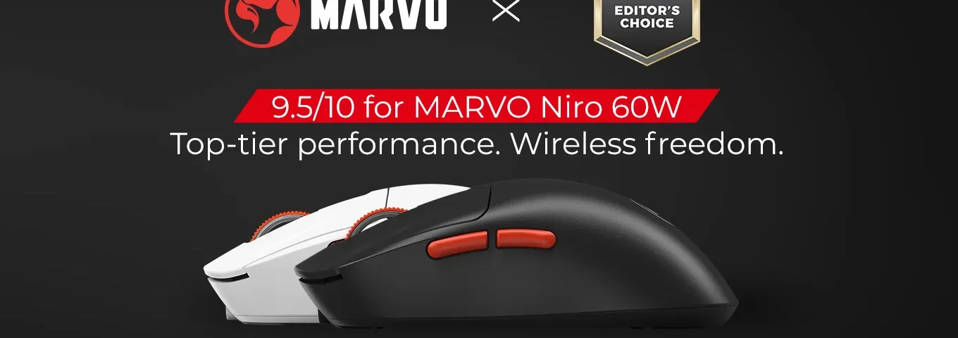 Мы рады сообщить, что беспроводная игровая мышь MARVO Niro 60W была официально удостоена награды «Выбор редактора » от CGMagazine, одного из самых авторитетных сайтов по обзору оборудования и игр в Северной Америке.