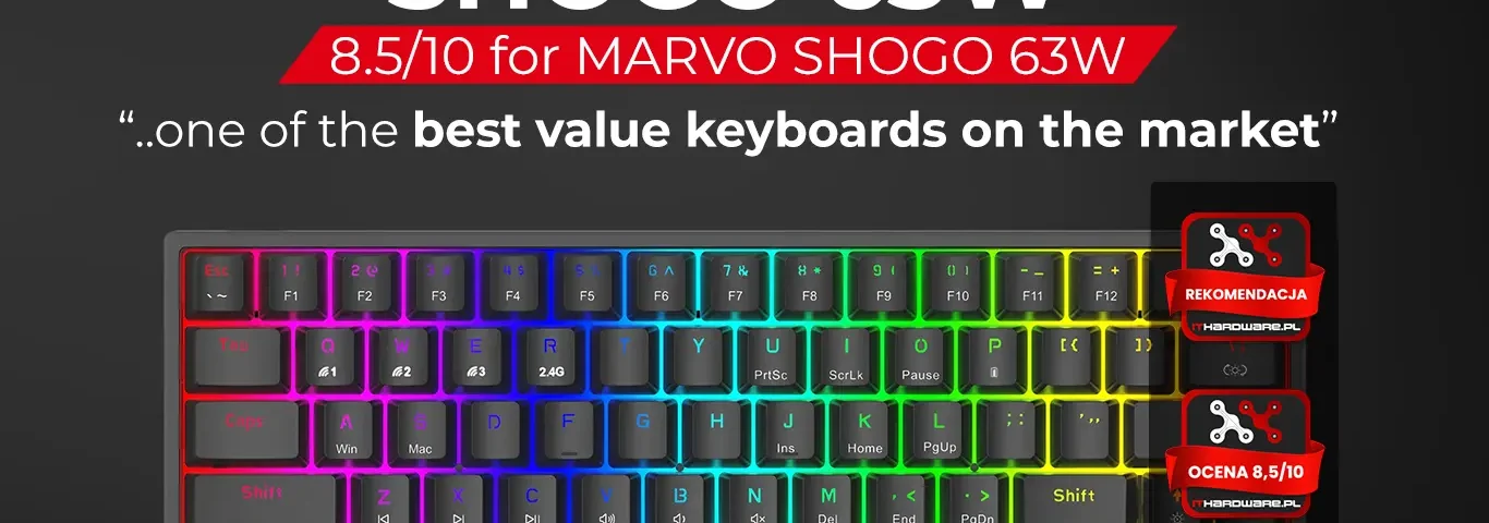 MARVO Shogo 63W получил официальную оценку 8,5/10 и рекомендацию редактора от ITHardware, одной из ведущих польских платформ по обзору технологий и игр.